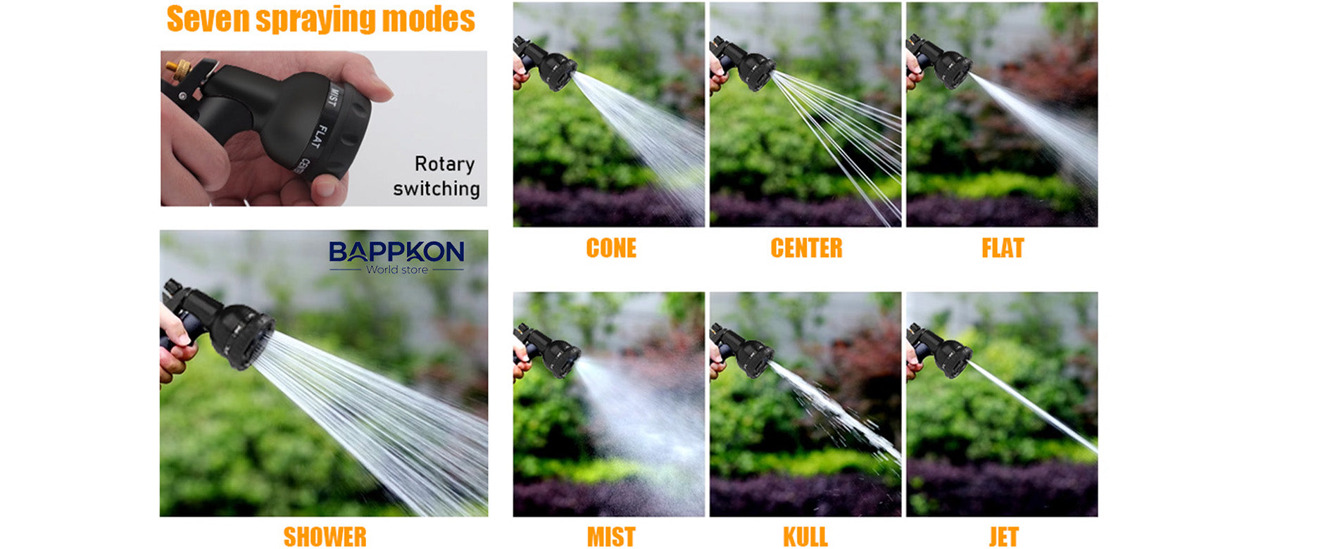 Dehnbarer Gartenschlauch mit 7-Funktions-Sprühdüse