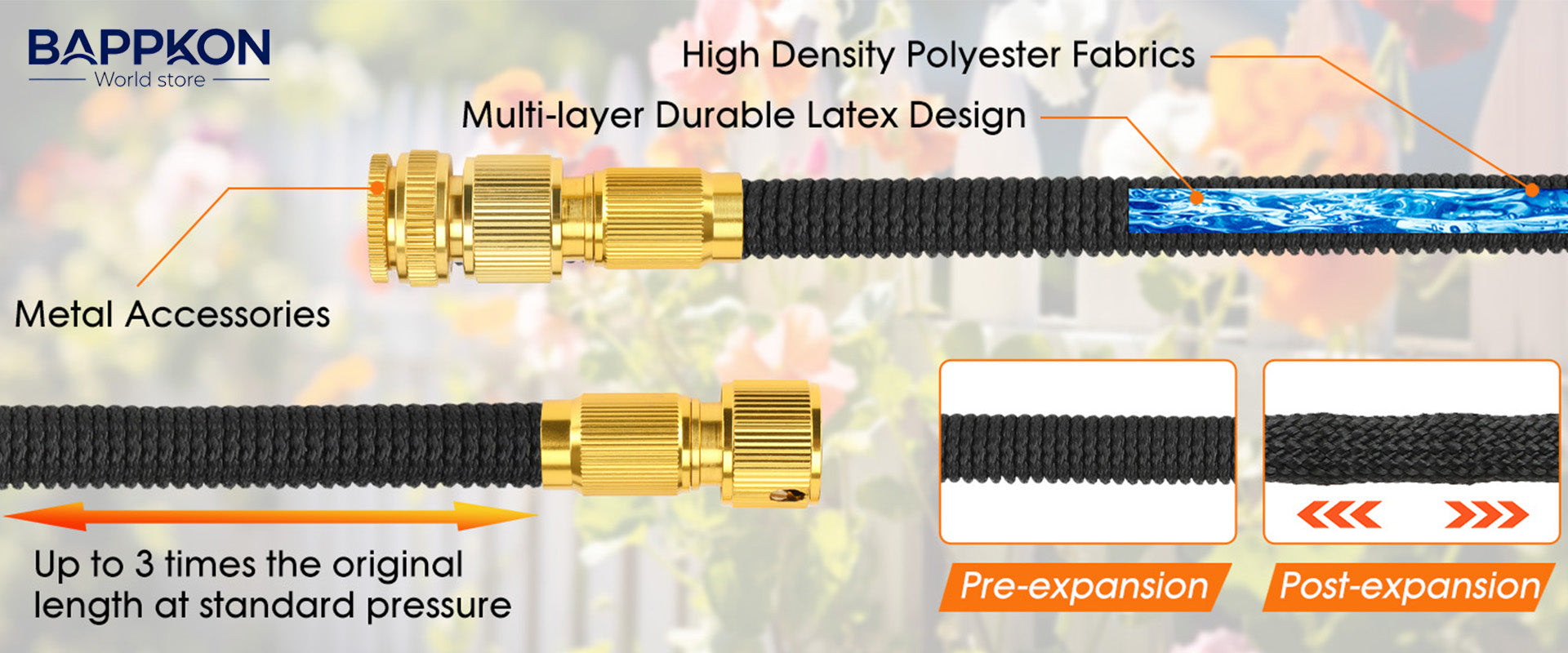 Ausziehbares Design: Dehnt sich bei Wasserdurchfluss auf 15 Meter aus und lässt sich zum Verstauen auf ein kompaktes Maß zusammenziehen.